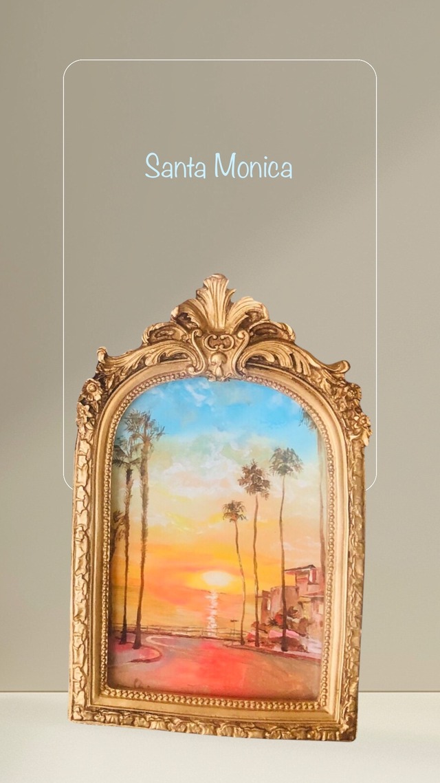 画用紙 アクリル画 原画 フレーム付 10×15 サンタモニカの夕暮れ*・゜゚・.。.:*・ ※手書きの原画になります 照明や光の具合により、色の見え方が変わって見える場合があります。